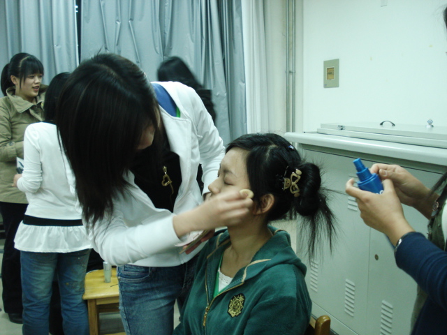 本次彩妆大赛决赛于3月24日7点在明水校区1202举行,参加本次决赛的8位选手均是在彩妆大赛初赛中有出色表现的选手。比赛分两个环节进行,一组上场进行现场化妆,一组在场下对白色T恤衫进行裁剪设计。比赛同时评委还和参赛选手进行现场互动,针对“修眉,画眼线”等化妆问题进行现场交流。心灵手巧的化妆师们用一把把画笔,一把剪刀,一个个小挂饰将女性美勾勒的淋漓尽致。