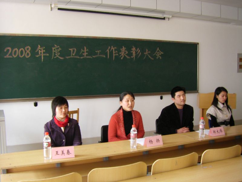 在Y201召开2008年度卫生工作会议暨2007年度卫生表彰大会。党总支杨扬副书记以及全体辅导员老师参加了此次会议。