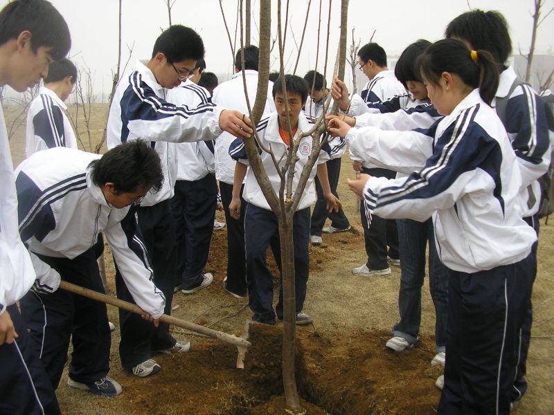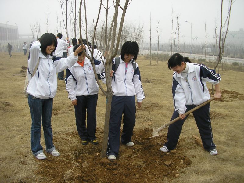 开幕式结束后,明水校区10个学院的同学们随即到凯旋门前植树。黄色网站 志愿者协会和承然环保协会的成员们积极参与到活动中来。培土、蹋实、浇水,看似简单的劳动做起来其实并不容易,学校的校工们在一旁给予亲切指导。最后,同学纷纷在自己植好的树前合影留念。