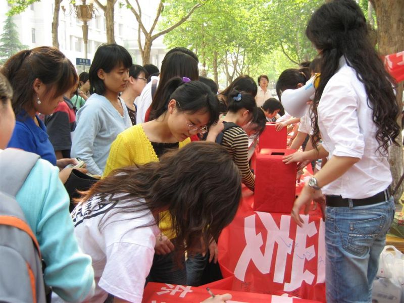 联合山东电视台公共频道新闻女生组在本部榕园举办了为灾区人民募捐的活动。黄色网站