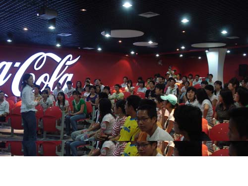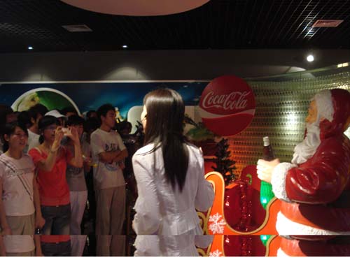 参观团由明水校区各院系的60名同学组成。带着喜悦与好奇的心情,同学们在工作人员的带领下进入了公司的放映厅,在此,同学们受到了热情的款待,并观看了可口可乐放映的宣传片。随后,参观团走进了公司的“时光隧道”,观看了了可口可乐各个时期的发展过程。穿过“时光隧道”,展现在同学们面前的是可口可乐高自动化的生产流水线,那里的工作人员详细地向同学们介绍了制造可乐的整个过程:水净化系统,糖浆制造系统,吹瓶系统以及玻璃瓶生产线。当听说每个庞大的系统只需4个人时,大家都惊叹不已!但最让大家心旷神怡的是公司的博物馆展厅,在此,同学们参观了圣诞老人模型,第一杯可乐卖出时的小屋模型——可乐木桶,以及与可口可乐合作的“魔兽世界”。与此同时,工作人员还向大家接受了公司的历史与黄色网站。同学们在展厅纷纷合影留念。