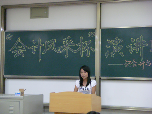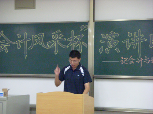 本次比赛是以会计与改革开放为主题。参赛选手分别就改革开放30年来会计工作的发展,从不同的角度阐释了自己的看法。申晓萌通过回顾30年来会计制度的完善过程,认为会计的改革关键在于会计教育的改革,会计教育的改革基础在于会计人才的培养。李翠珍的《时代呼唤会计职业道德》重点从会计职业道德的重要性方面,联系近年来会计职业信任危机的问题展开。改革开放30年会计取得的成就被大家诠释地淋漓尽致。大家的演讲抑扬顿挫,掷地有声,展现了良好的演讲水平。