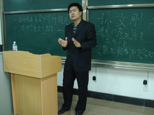 在明水校区3302教室举办会计学导论讲座。此次讲座由孙文刚副院长主讲,主要面向大一新生。