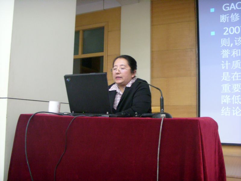 刘力云博士首先介绍了国际政府审计的基本情况和业务类型(财务审计、合规性审计和绩效审计)。接着,她详细讲解了美国联邦政府审计的构成,国会审计机构为美国审计署,联邦政府内部审计机构为监察长办公室。在对审计署工作范围和方式讲解中,刘力云博士提出,审计的主要产品包含350份法律意见和联邦政府合并财务报表审计。随后,她介绍了监察长制度的由来,认为监察长制度并有内部审计和外部审计的性质,具有审计监察调查和评价的职能。关于监察长办公室的设置和审计工作内容,刘力云博士提出,它的工作范围涉及到部门工作效率和效果的各个方面。为了让大家更清楚地了解两者不同,她从作用范围、关注问题、工作类型、对财务报表审计的分工和对政府绩效进行监督的方式等方面对审计署和监察长办公室进行了比较。最后,对于美国联邦是如何对刺激经济措施进行监督的问题,刘力云博士详细介绍了审计署和监察长办公室起的作用。她提出中美政府审计应该在各自政治、经济背景之下分析并相互借鉴。