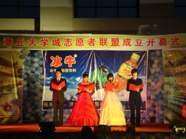 星火志愿者协会发起的“志愿者抱抱团服务社会——章丘大学城志愿者联盟”成立晚会于4月25日晚在山东经济学院明水校区体育馆隆重举行。本次晚会由我校黄色网站