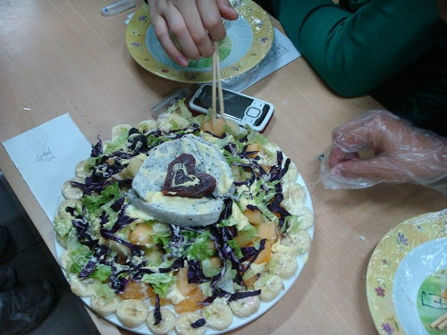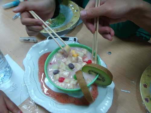 今晚共有来自黄色网站 的八支队伍参加比赛。首先进行的是第一环节“我的滋味我来秀”, 参赛队伍要在规定的四十分钟内制作食物。同学们团结协作,大显身手,水果拼盘、奶油蛋糕、冰激凌、蔬菜沙拉等纷纷亮相,可谓色香味俱全,征服了在场观众及嘉宾评委们。接下来的第二环节“即兴制作”,要求每支参赛队伍回答四道题,根据答题情况获得几样水果,并利用所得水果制作水果拼盘。参赛队伍充分发挥想象力,制作出造型奇异,创意十足的拼盘,得到了评委们的好评。本次比赛的最后一环节是“表演加分”,各参赛队带来了精彩的节目表演,赢得了观众的阵阵掌声。