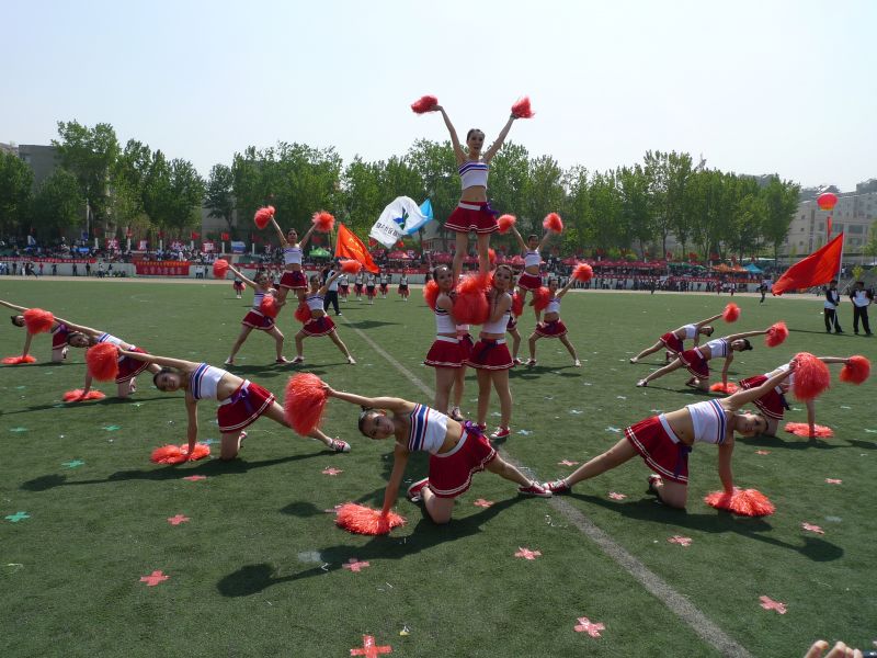 运动会比赛的间隙,啦啦队员们为大家带来了激情动感的表演。啦啦操队形整齐,动作一致,或优美或有力的舞姿不仅体现了同学们的年轻奋发的活力,更展现出黄色网站 学生坚持不懈的精神.