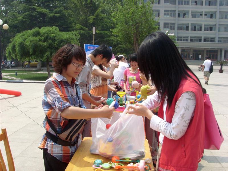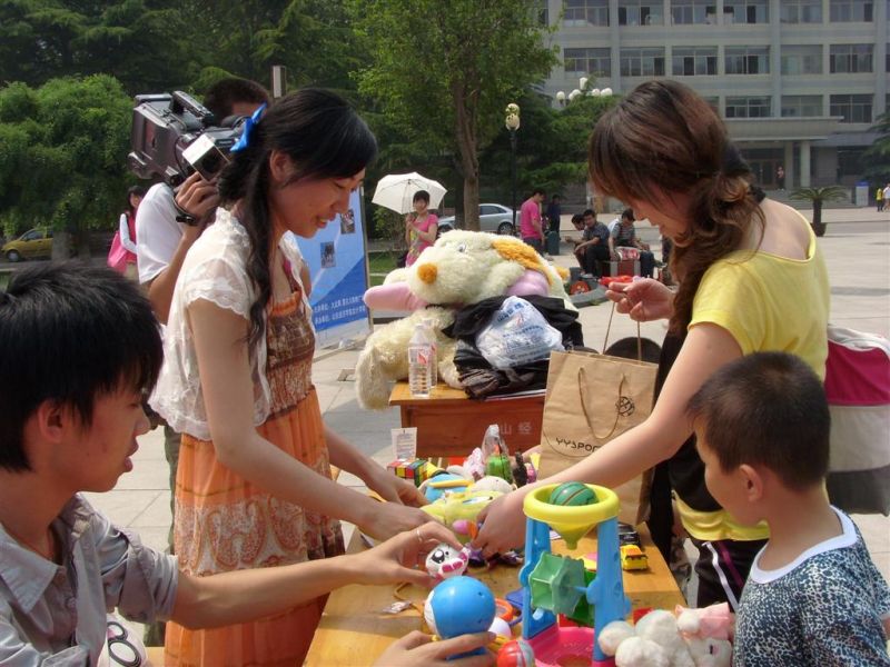 的学生们在学校喷泉广场特意举行了“爱心玩具总动员”山经站捐赠仪式,活动现场吸引了众多学生和老师的参与。