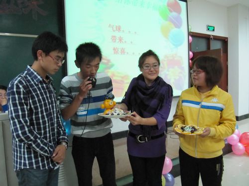 比赛共分为三轮:第一轮,参赛队伍分组制作,自备材料大显身手;第二轮,亲友团倾情献艺,为参赛队伍加油助阵;第三轮,猜词游戏,并根据游戏排名,各组领取材料进行现场制作。参赛队伍制作期间,现场同学也忙得不亦乐乎,纷纷参加小游戏,不时爆出阵阵欢笑。约二十分钟后,参赛队伍制作完毕,“飞流直下三千尺”“月亮代表我的心”,各式各样的美食尽现眼底,不禁让人垂涎三尺。待评委品尝评定完成后,同学们也都争先恐后的品尝,而且赞不绝口。第二轮中,亲友团各显身手,吹拉弹唱,小品舞蹈,更是将现场的气氛推向高潮。而在最后一轮中,各组同学也都拼尽全力,争分夺秒,奋力一搏。最终,经评委评定,由会计1001班和会计1004班组成的“人生百味”组合加冕冠军。