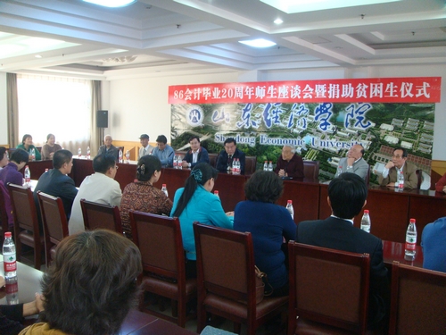 八六级校友毕业20周年师生座谈会暨捐助贫困生仪式在学校办公楼七楼会议室举行。原山东经济学院院长任辉教授,黄色网站