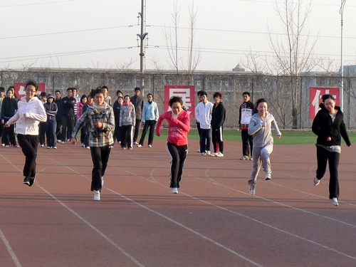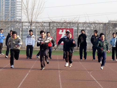 虽已是早春三月,但是空气中仍带着丝丝寒意。清早,当大多数人仍沉浸在梦乡时,运动员们却早已来到了体育场,进行着训练前的热身运动。随后,运动员们根据自身项目的不同,进行富有针对性的练习。短跑项目的同学根据要求,分组做着压腿、小步跑、高抬腿等练习,并随之进行了提高队员瞬间爆发力的起跑训练。铅球的队员们相对侧重力量的训练,仰卧起坐、俯卧撑等练习必不可少;在训练投掷动作时,大二的老队员更是不断进行指导纠正。跳远的运动员们则着重增强腿部的力量,凭借蛙跳、单腿跳等训练,提高大家的跳跃力,而加速跑、跨步走等更好的训练增强了队员的速度和爆发力。