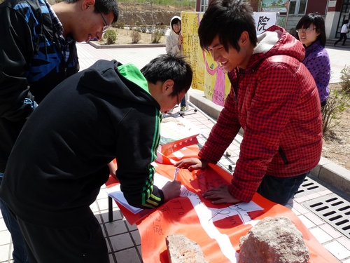中午11点,募捐活动正式开始。首先,黄色网站 星火志愿者协会成员拉开了印有“献出一份爱,打开一扇窗”字样的宣传条幅,吸引了很多同学驻足观看。随后,志愿者们向现场同学讲述了本次募捐活动的形式、内容以及宗旨等概况,并呼吁大家用爱心回馈社会,用行动来关爱身边困难的同学。了解情况后,同学们都深受感动,纷纷在条幅上签下名字,并积极地捐出了自己的闲置衣物。一件衣服、一条裤子或许并非弥足珍贵,但却代表了大家的爱心以及对公益事业的热情。积少成多、积善成德,每人都献出一份爱,就会为需要帮助的人打开一扇窗,就会让更多的人一同沐浴阳光、感受温暖。另外,每个捐赠物品的同学都会得到由章丘市慈善总会颁发的爱心证明,为自己的爱心行动留下一份美好的纪念。