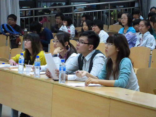 考核现场评委给出话剧表演题目——《年轻的战场》,并请参加考核的同学依据自身情况决定是否脱稿表演。该话剧共分为五幕,同学们依据评委分组对其中的一幕进行演出。半小时后,2011级的新生陆续上台表演。虽然准备时间短暂,但是同学们迅速进入角色,将所饰演的人物性格、心理等各方面展现的淋漓尽致,精神世界的波澜在吞吐台词的微妙节奏变化和表情动作的控制中得以传达,完美的诠释了“青春无悔青春万岁”的话剧中心,给人一种“青出于蓝而胜于蓝”的感觉。同学们精彩的表演赢得了现场评委及观众的一致好评。此次表演类考核充分展示出了新生们对生活的热爱,对表演的热爱以及对美的追求。