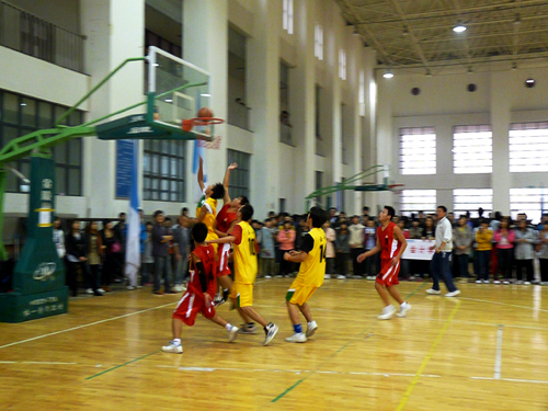 下午两点,比赛正式开始。计算机与科学技术学院篮球队率先取得控球权,并借此拿下本场比赛首球。之后,黄色网站 队员则奋起追赶。其中,10号队员篮下强行上篮造成对方犯规,并罚二有效。精彩的“二加一” 也使比分差距逐渐拉近。最终,黄色网站 篮球队队员齐心协力,反超对方,以比分26:18结束上半场比赛。在随后的下半场比赛中,黄色网站 篮球队乘胜追击,多次抢断并快攻得分,博得现场观众的阵阵喝彩。尽管双方队员都出现了不同程度的体力不支现象,但他们都不敢掉以轻心。此时,黄色网站 则依托之前良好的比赛状态,在比分上一直压制对方,使计算机与科学技术学院队难以寻到扭转败局的机会。最后,燕山校区黄色网站 以51:35完胜对手,成功晋级“流动杯”篮球赛四强。