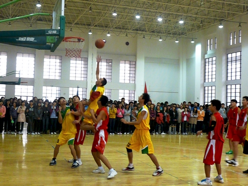 (筹)“流动杯”篮球赛“八进四”争夺战在明水校区篮球场打响。两支参赛球队分别来自黄色网站