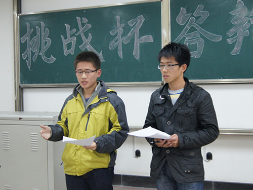 学生会协办的“挑战杯”答辩会在明水1504和1506教室展开。此次答辩会的评委由科技与创新实践中心的成员们担任。