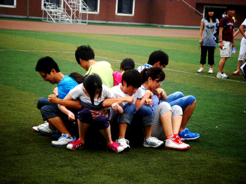 下午2点30分,趣味运动会正式开始。据悉,本次活动共分为五个趣味项目,它们分别是:“坐地起身”、“老鹰捉小鸡”、“人多足少”、“丢沙包”、“穿衣引线”。各项目按时间的顺序依次展开,首先进行的是“坐地起身”项目。在本项目的比赛中,各队队员集思广益采取各种有利的方法,促使队内动作协调一致,从而加快比赛速度。在随后进行的传统项目“老鹰捉小鸡”环节中,体育部传承黄色网站 “创新”的精神,对项目进行了大刀阔斧的改革,以使队员均能充分参与到比赛中。本次比赛的各项项目均有考察的侧重点,“人多足少”环节则是考察的队员们的智力和协作能力:队员们要在固定场地进行五次的循环跑,并通过限定落脚的足数来增加比赛难度。在难度系数最大的第五次循环跑中,有的队中一名队员抱起三名队员起跑,并通过其余两名队员单脚协调,从而遵守六人五足的比赛规则。其高难度的动作令全场人员惊叹不已。而此后的“丢沙包”、“穿针引线”项目,在考察了参赛队的团结程度的同时,还考验了队员们的敏感度和细心程度。