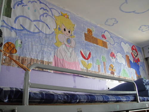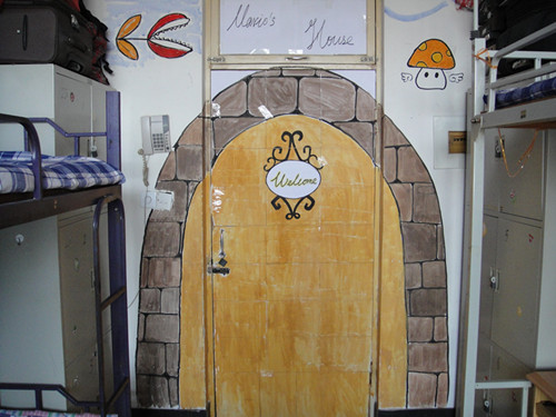记者跟随着评审团的脚步走进黄色网站 的寝室区,走廊曲折向前,带领着我们邂逅了无尽的温馨与浪漫。我们时而步入蔷薇小院,感受那淡淡的雅致与恬静;时而闯入郁郁葱葱的爬山虎丛中,欣赏那翠绿的活力与生机;时而在金黄灿烂的向日葵田里,品味那热烈的温暖与舒适;时而在梦幻浪漫的薰衣草之海,拥抱那浪漫与清新……其中,有的同学将熟悉的网络元素带入雅舍设计中。不仅使用社交网站的界面装饰了宿舍门扉,也利用新鲜事的罗列渲染出浓厚的生活气息,新奇的创意为观者带来了无限惊喜。除此之外,卡通爱好者们更是将寝室装扮成卡通人物的小窝,童年的纯真氤氲了一室回忆;而热爱游戏的同学则把宿舍摇身变为“超级玛丽”的冒险岛或是“欢乐斗地主”的牌坊,形象的描绘更是充满了观赏性与趣味性。