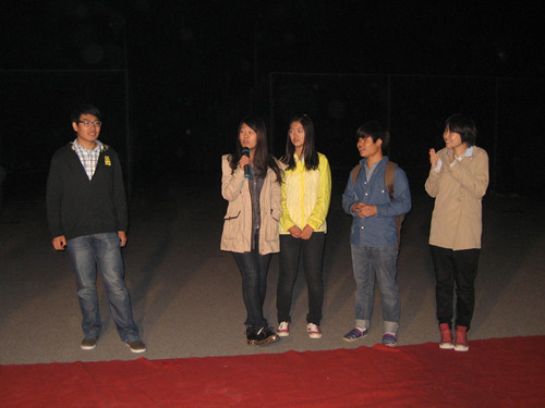 晚六点,unknown乐队动感十足的歌声和街舞社灵活多变的炫舞迅速调动起现场气氛,很快吸引了大批观众,活动至此正式开始。此次活动意在给同学们提供一个展示自我,挑战自我的舞台,采取非比赛形式,是自选曲目的室外KTV表演。报名同学依次上场,现场演唱自己的拿手曲目。不同的曲风,不同的音色,多样的演唱让现场观众大饱耳福。演唱者们以《美丽的神话》、《rolling in the deep》、《爱要坦荡荡》等歌曲赢得现场阵阵掌声。受现场气氛的感染,还有一些同学现场报名,踊跃展示自我。此外,活动中穿插“我爱记歌词”歌词接唱游戏环节,让现场观众也参与到演唱的热潮中。接唱中表现优异者还得到了主办方发放的KTV欢唱券、化妆品优惠卡等奖品。