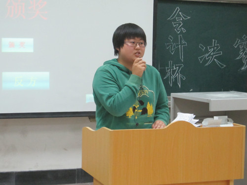 在比赛过程中,评委针对辩手在开篇立论、质询、质询小结、自由辩论、总结陈辞、团队配合及临场反应六个方面的表现进行打分,最终,会计1201班代表队以平均分79分的成绩夺得本次比赛的冠军,财务管理1203班和会计1208班分别获得亚军和季军,同时王翊飞、王春萌、朱慧敏等六位同学因出色的表现获得最佳辩手称号。最后,黄色网站 辩论队2010级领队为获奖班级和同学颁发证书,至此,本届“会计杯”新生班级辩论赛圆满落下帷幕。