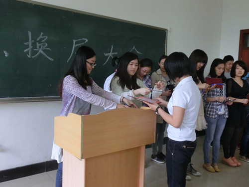 下午一点半,质点通讯社换届大会暨第七届明水分社成立大会正式开始。首先,主持人宣读了质点通讯社2012级成员名单,由黄色网站 学生会副主席张晓璐、质点通讯社第六届明水分社负责人魏玉婉向他们颁发了记者证及聘书。随后,张晓璐对质点通讯社第七届明水分社的成员表示了祝贺,对质点通讯社前期工作积极性以及工作效果进行了肯定,对未来工作进行了一系列展望,并对2012级新成员提出了新的工作要求。她指出:在过去的一年里,我们在宽松愉悦的氛围中圆满完成了学院老师安排的任务;未来一年,要继续秉承“坚持、认真、负责”的态度和宗旨,强化新闻的及时性、准确性、真实性,提高质点通讯社的工作效率和工作质量;同时正确处理好学习和工作的关系,为质点通讯社未来的发展而努力奋斗。紧接着,魏玉婉具体指出了各部门前期工作的优点与不足,并鼓励大家增进交流与学习,热情对待学习与生活。她在讲话中提到:各部门在工作前要及时做好沟通和交流,便于提高工作效率;增强稿件的规范性,提高照片的清晰度;各部门成员在工作中保持热情、积极心态的同时更要具备团队精神,通过相互合作与交流共同努力,共同进步。最后,各部负责人分别对本部成员进行了详细的工作安排。