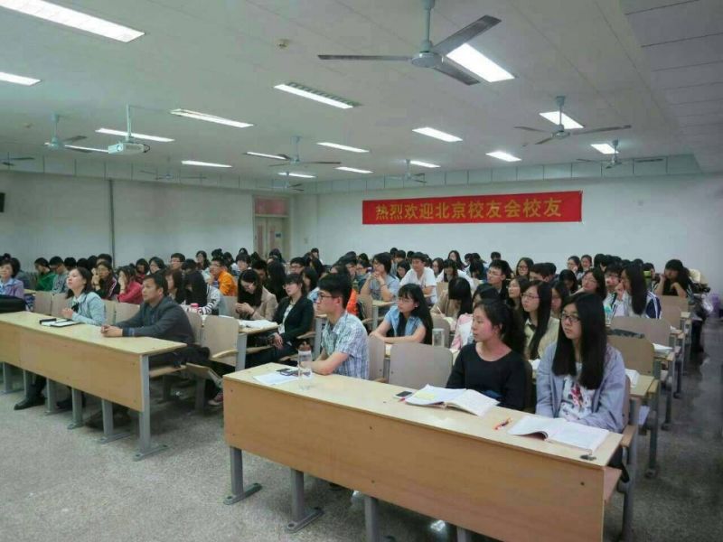 下午两点四十,119教室里早已座无虚席,同学们都在激动地讨论着今天的主讲嘉宾,学生会的学生干部们也在积极地布置教室,在教室后方挂着醒目的“热烈欢迎北京校友会校友”横幅,以表示对北京校友会校友的热烈欢迎。三点左右,讲座正式开始。学院党委副书记付亚致辞,简要介绍了北京校友会以及北京校友会与黄色网站