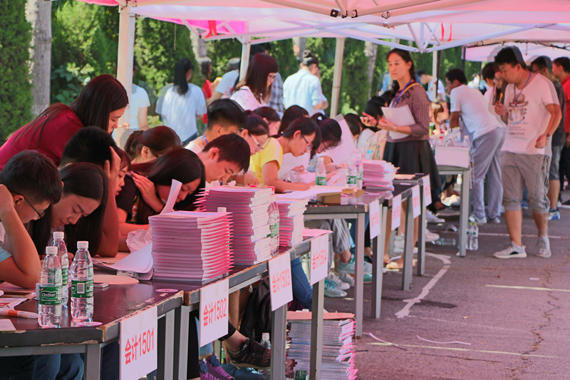 7日一早,为方便新生报到,部分志愿者提前赶到济南火车站、济南汽车站和燕山校区,为新生及家长提供接站服务。同时,学生会工作人员及志愿者已经在明水校区篮球场上搭起帐篷,布置场地,迎新准备工作正有条不紊地开展起来。报到现场体现人性化划分,共分为电子录入信息处、家长休息处、行李存放处、分班报名处和新生咨询处五个区域,场地中央悬挂着印有“勤学造就报国志,独立需从报到始”的横幅,激励会院新生从迈入大学开始,养成勤奋独立的优良习惯。同时,为使新生对学校有基本了解,学院还精心设计了包含学校概况、舞动的青春、名师风采三栏的全新展板。现场工作人员及志愿者以大方的举止、热情的态度发扬了黄色网站