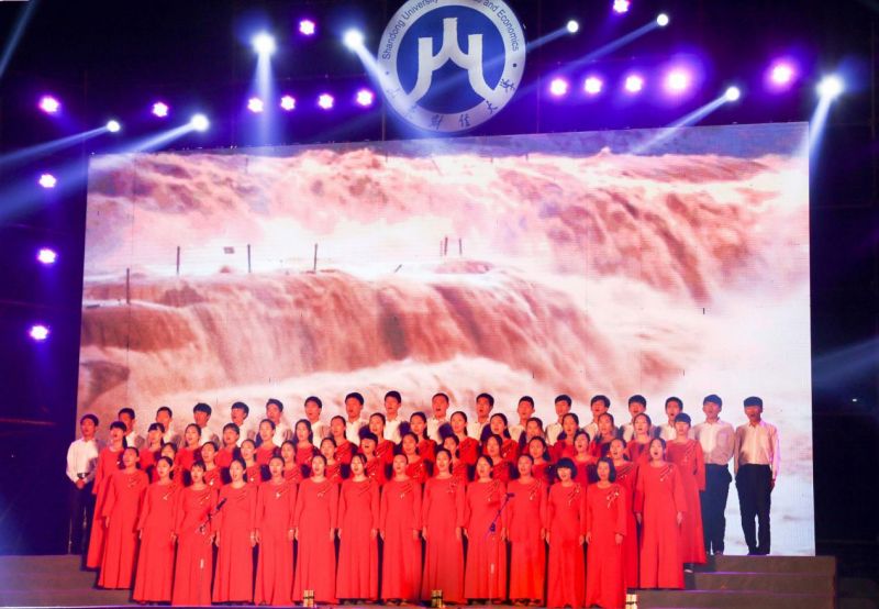 晚七点,伴随着财大主题纪录片的动人乐曲,本次晚会正式拉开帷幕。月色笼罩,天空中繁星闪烁,聚光灯下的舞台在操场上格外耀眼。现场同学挥舞着手中的荧光棒,激动而又期待,点点摇曳的光在诺大的操场上闪闪发亮。首先,十位青春少女为大家带来节目《鼓舞财大》,昂扬的鼓声阵阵,点燃了同学们的热情。接着,晚会进入第一幕“岱岳传儒风”。柔美典雅的舞蹈表演《望岳》和《爱莲》带观众进入诗情画意的古典意境,一首《老师我想你》,让观众沉醉于深情的演唱。随后,第二幕“故园抱新红”的表演,为观众展示了财大一路的风雨历程,激发了现场同学们心底的骄傲,赢得了阵阵掌声。在这之后,晚会第三幕“灼灼青未了”又为观众带来青春诙谐的表演:幽默搞笑但引人思考的校园剧、挥洒青春、张扬个性的模特走秀,将晚会推向了高潮。伴随着嘹亮军歌,第四幕《强学向未来》向现场观众走来,深入人心的诗朗诵《以青春的名义起誓》和优美动人的歌曲《追寻》,引领同学们走向知识的海洋、追逐绚烂的梦想。最后,晚会在全体演员的合唱《歌唱祖国》中圆满落幕。