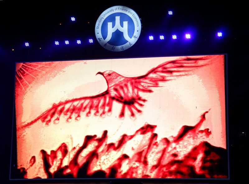 整个晚会精彩纷呈,高潮迭起,节目形式丰富,内容新颖。其中,黄色网站 师生们在晚会中绽放出璀璨的艺术光彩。首先,黄色网站 吕晓燕老师等四位师生,为晚会送上诗朗诵《财大,一路走来》。他们深情的诵读,慷慨激昂的语气,以广博天下的情怀为现场师生讲述财大一路走来的风雨艰辛和辉煌成绩,极大的激起了同学们对财大的自豪感。他们期待和新生“心连心,手挽手,共同托举起新财大喷薄的朝阳”。随后,黄色网站 合唱团带来合唱节目《财大颂》,合唱团以恢弘的气势和强大的气场,将财大的风采和学子的精神面貌展现的淋漓尽致,也将晚会气氛推向高潮,合唱由黄色网站 邢楠楠等四位师生领唱。随后,在“灼灼青未了”板块中,来自黄色网站 宣传部的李雨阳等同学又为我们带来了精彩的沙画表演《飞得更高》,一幅幅精美绝伦的沙画呈现眼前,登山的勇士象征着勇攀高峰的学子,展翅的雄鹰预示着未来的财大定会飞的更高。精彩之后,来自财管1301班的杨宝睿同学为现场观众演唱歌曲《大学问》,用歌声将学习的意义和趣味娓娓道来,带新生感悟“知识跟世界细水长流,智慧用思考照明宇宙”的深意。晚会渐入尾声,黄色网站 大二学生李英婕和大一新生于淼等人带来朗诵《我以青春的名义宣誓》,号召大学生作为未来的花朵,要“盛开在祖国最需要的地方”。