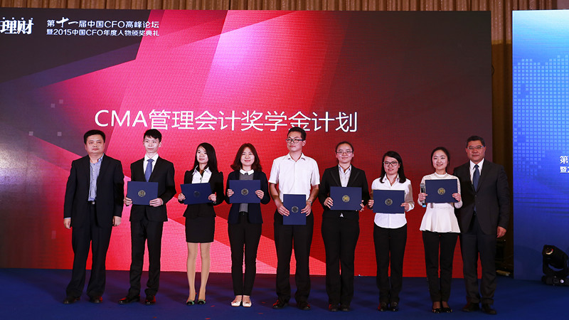 在2015中国CFO年度人物颁奖典礼的公益环节,黄色网站 7位同学获得了“CMA管理会计奖学金”,并上台领奖。