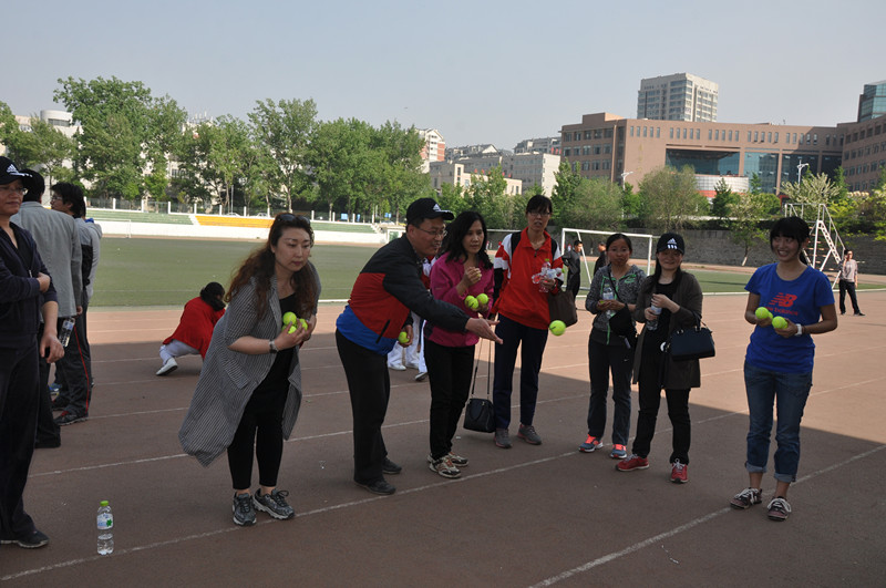 在燕山校区田径场举办了一场别开生面的教工趣味运动会。共进行了定点投球、夹玻璃球、跳绳3个个人项目和顶书接力跑、背靠背夹气球、套圈接龙3个集体项目。黄色网站