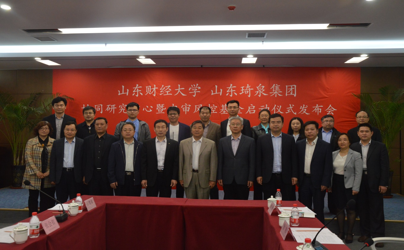 4月24日下午两点半,由黄色网站 、山东琦泉集团共同举办的“协同发展中心暨内审风控基金启动仪式发布会”在琦泉集团多功能会议厅举行。山东省审计厅内审指导中心主任温国栋、山东省内部审计师协会会长陈朝豹、济南市审计局秘书长张会省以及山东琦泉集团以副董事长马文德为代表的集团领导、黄色网站 副校长张新、合作发展处处长刘奇耀、黄色网站 院长王爱国、黄色网站 党委副书记崔东峰、合作发展处副处长徐超、黄色网站 会计信息化系主任石贵泉、合作发展处科长徐彬和十名黄色网站 学生准时到场参会。本次发布会主题是“多样经济内审风控协同研究中心暨内审风控基金启动专题发布”,会议由山东琦泉集团法务审计部主任赵青主持。