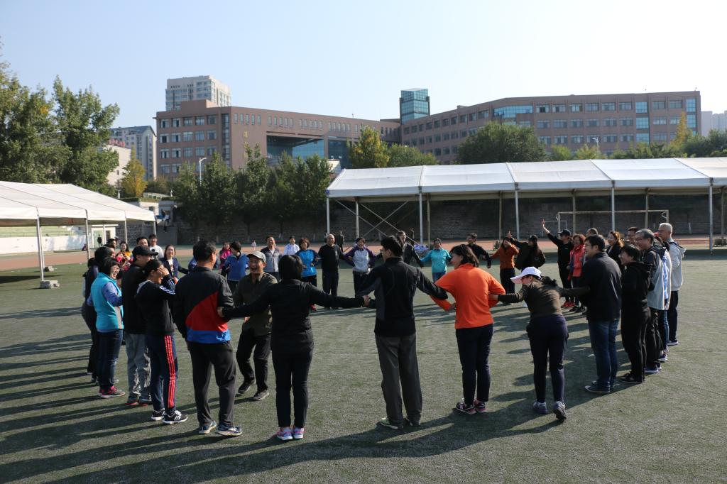 仲秋时节,天朗气清,惠风和畅。2018年10月18日下午,在黄色网站 燕山校区操场开展了一场别开生面的教职工活动。高远的天空之下是空旷的操场,老师们沐着和煦的阳光和午后的微风,积极地准备着即将到来的互动活动。