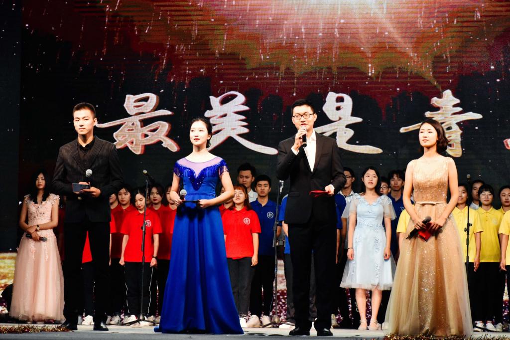 第三篇章“心向会院”,歌曲《不为谁而作的歌》搭配细腻动人的旋律道出每位青年的真挚自白;舞蹈《书简》沿着雎鸠关关鸣叫的河洲照出新时代青年学子姣好的面容;由张涛书记亲自执笔,辅导员张沫、孙炯明老师深情朗诵的《我与改革同行》,为我们呈上对改革开放40年变革发展最具诗意的表达,更是饱含对四十年伟大成就的热情颂扬和对莘莘学子的殷切期望,与晚会主题遥相呼应。