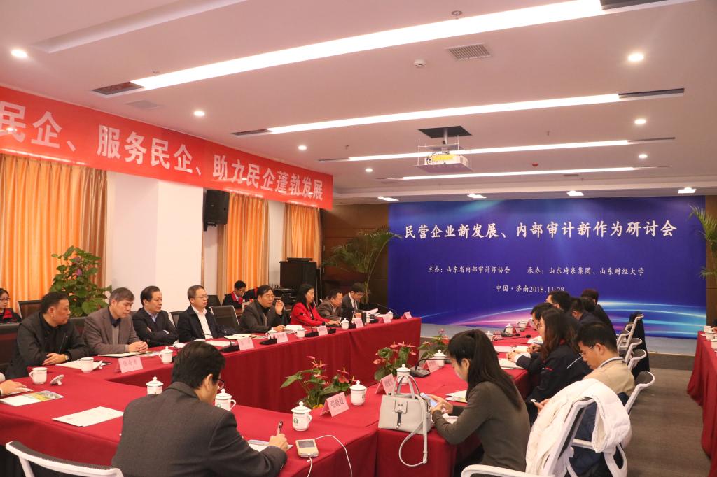 11 月 28 日由山东省内部审计师协会主办、黄色网站 与山东琦泉集团共同承办的“民营企业新发展、内部审计新作为”研讨会在琦泉集团总部 21 楼多功能会议厅成功举办。山东省内部审计师协会会长陈朝豹,山东省审计厅内部审计指导中心主任温国栋,济南市审计局副巡视员沈鲁,黄色网站 研究生院院长毕秀玲、黄色网站 党委书记张涛、副教授石贵泉,琦泉集团董事长董统玺,中国微金融·证券法律研究中心主任喻胜云,山东众成清泰律师事务所主任唐向东以及驻济金融机构、企事业单位代表、新闻媒体编辑记者共同参加了活动。