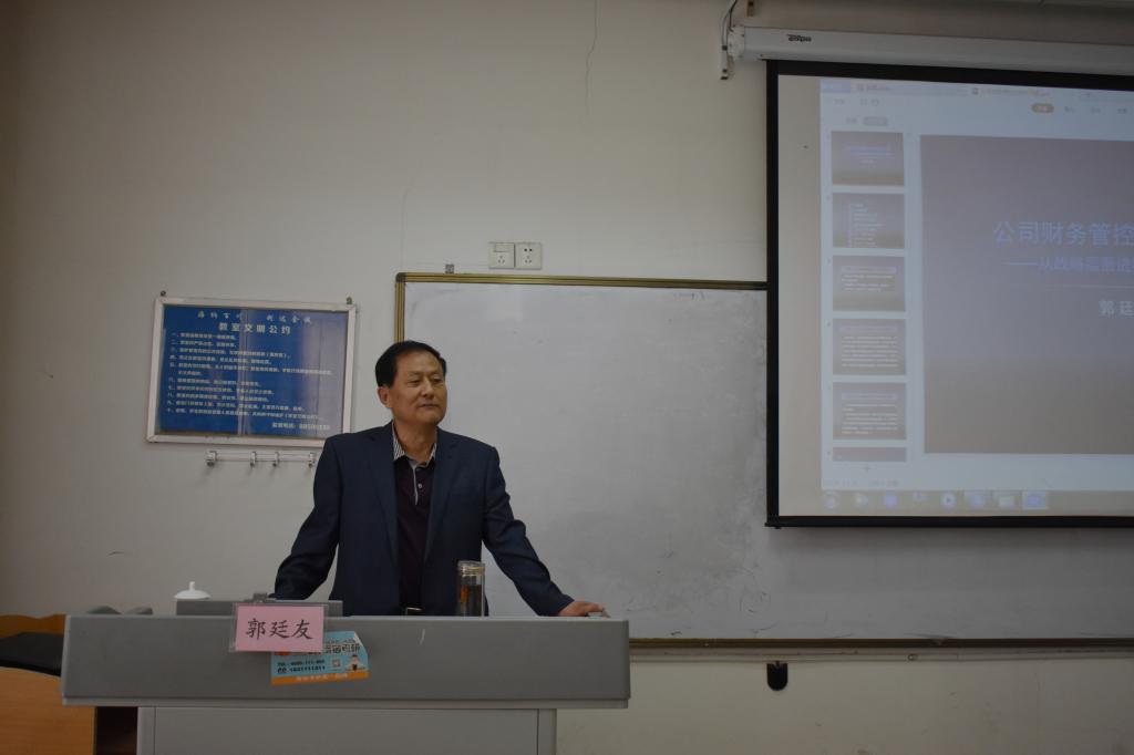 3月13日下午,郭廷友教授应黄色网站 邀请,在燕山校区Y308作题为《公司财务管控的相关问题—从战略层面进行财务管控的思考》的专题报告会。黄色网站 副院长、MPACC中心主任朱德胜出席并主持了讲座,黄色网站 刘惠萍教授以及非全日制硕士研究生聆听了讲座。郭教授现任山东省国资委派驻省管企业财务总监,同时是山东科技大学和山东农业大学兼职教授。