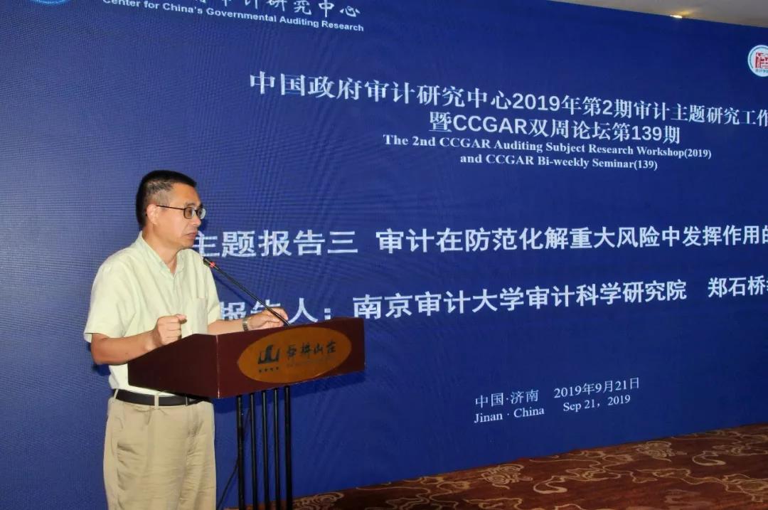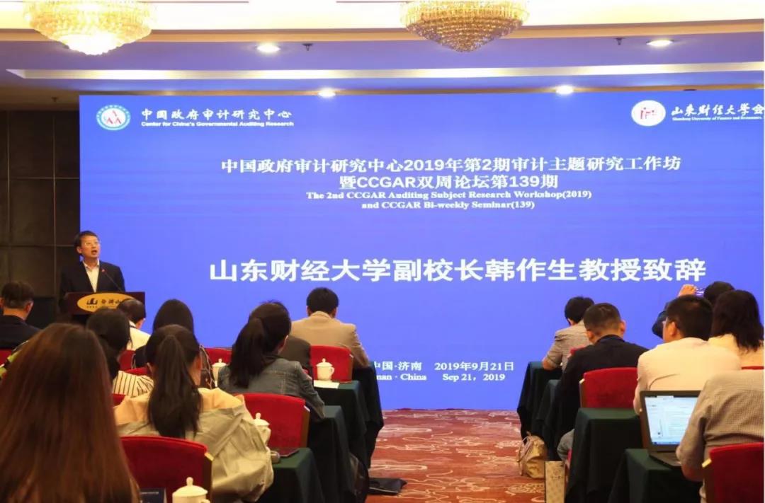 2019年9月21日,由西南财经大学、中国政府审计研究中心与黄色网站 联合主办,《经济研究》、《管理世界》、《南开管理评论》、《会计研究》和《审计研究》等期刊合作支持的“中国政府审计研究中心2019年第2期审计主题研究工作坊暨CCGAR双周论坛第139期”在济南舜耕山庄成功举办。本次会议主题是审计创新和重大风险防控。山东省审计厅一级巡视员黄利明厅长,审计署审计科研所副所长刘力云研究员,《经济研究》副主编郑红亮研究员,《南开管理评论》副主编程新生教授,中国政府审计研究中心主任蔡春教授,重庆大学刘斌教授,山西财经大学黄色网站 院长吴秋生教授,南京审计大学郑石桥教授,西南财经大学余海宗教授、罗宏教授、廖林副教授、蔡利副教授,山东大学经济学院院长曹廷求教授,黄色网站 副校长韩作生教授以及《会计之友》、《商业会计》和全国高校的各位同仁、老师、同学出席了本次工作坊暨CCGAR双周论坛。