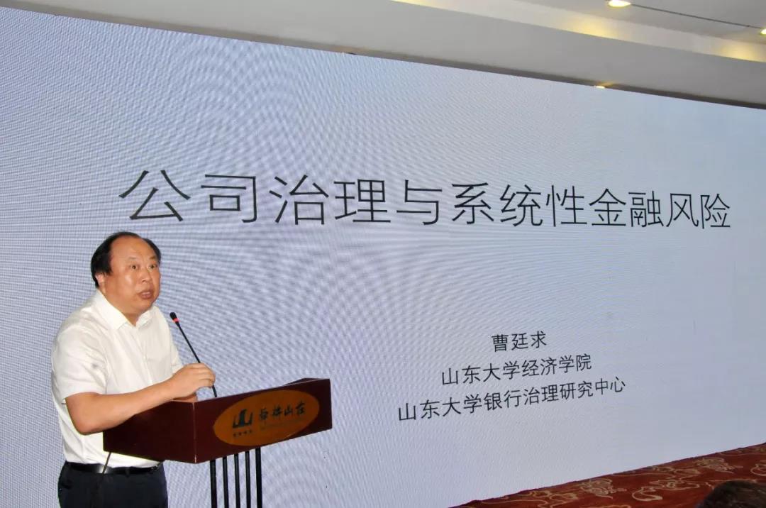 曹延求教授做了题为《公司治理与系统性金融风险》的主题报告。曹教授详细阐述了“系统性金融风险的治理视角”的研究背景,并从县域经济推动、地方政府有所作为、官员“锦标赛”等方面解释中国经济增长的原因。基于此,曹教授着重介绍了研究时的主要工作:其一,从制度、官员角度去审视;其二,从资金流动(资金资源争夺)的角度去审视;其三,围绕系统性金融风险,从采用改进后的未定权益分析法(CCA)、基于《国家资产负债表》的编制及数据资源、更科学、更精准地测算国家宏观金融风险等方面做了研究。