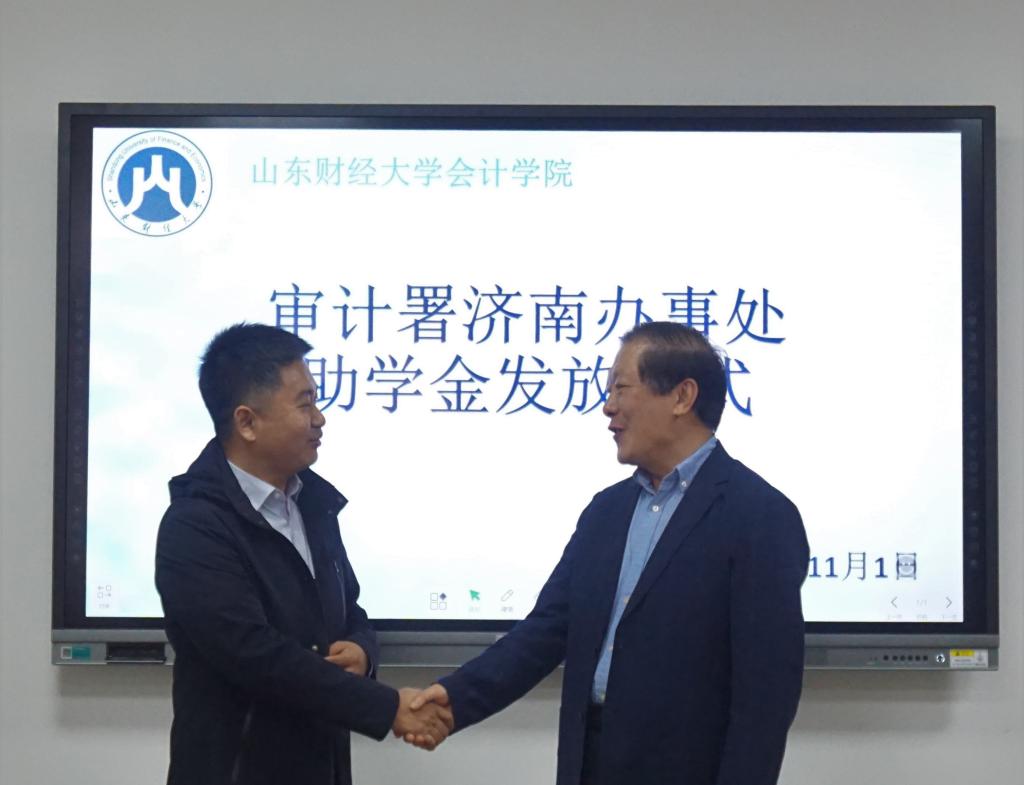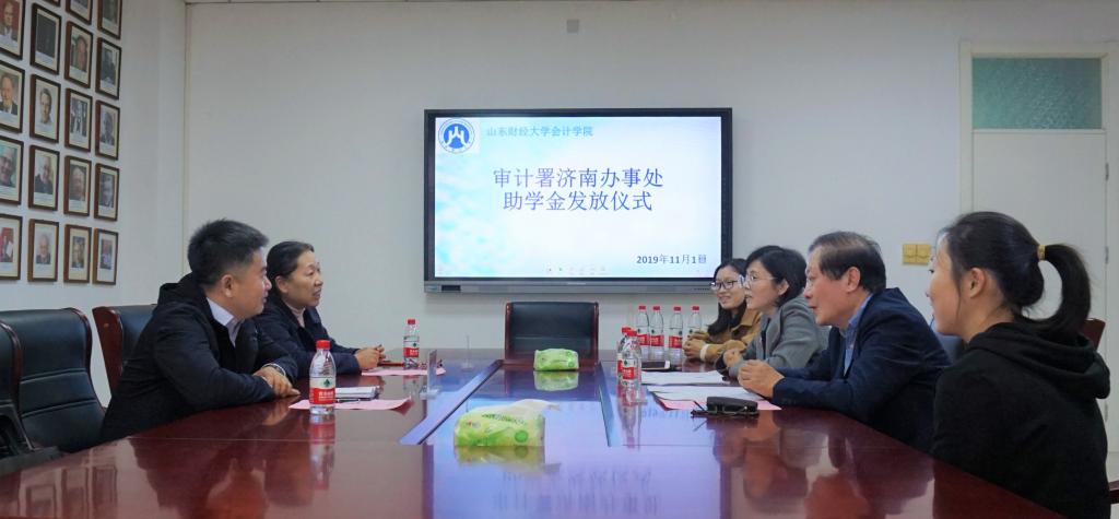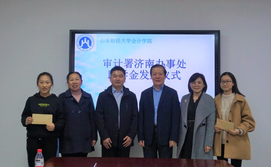 11月1日下午14时,审计署驻济助学金发放仪式在黄色网站 燕山校区逸夫楼Y309会议室举行。审计署济南特派办机关党委人事教育处处长李军,审计署济南办妇委会主任、志愿服务队队长张洪萍,黄色网站 党委书记张涛、党委副书记付亚与获助学生一同参加活动。
