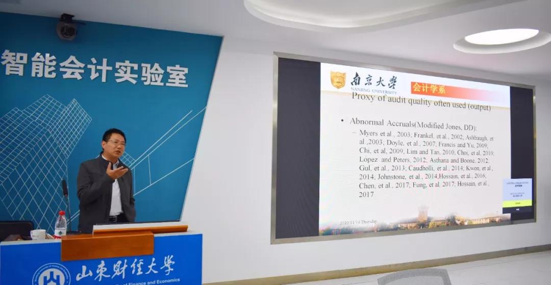 11月14日下午,值校友节之际,黄色网站 特地邀请昔日校友、现任南京大学商学院会计学系教授及博士生导师的李明辉教授作题为《独立审计质量研究》的学术报告。该讲座由黄色网站 副院长孙文刚主持,黄色网站 部分老师及2018、2019级部分硕士研究生到场聆听。李明辉教授兼任中国审计学会理事,主要致力于审计学教学与研究方向。