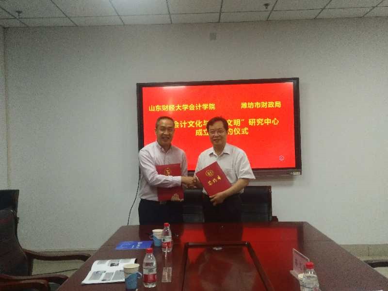 王献之说,受潍坊市财政局党组书记、局长王金祥委托,来到黄色网站 举行“会计文化与会计文明”研究中心成立暨签约仪式,感到非常高兴。他首先代表市财政局感谢黄色网站 多年来对潍坊市财政局各项工作的鼎力支持,感谢吴大新博士对山东会计博物馆(筹)的规划、布展、宣传的无私帮助,同时详细介绍了潍坊市“招院引所”工程的思路和政策措施,希望以研究中心为纽带,深化与黄色网站 在科研、教育和国际交流等方面的合作,不断提高山东会计博物馆(筹)社会服务的学术性、公益性和国际性,发挥其在全市财政系统乃至全社会的教育引领作用。