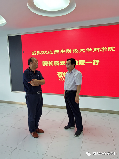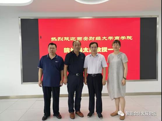 8月12日下午,西安财经大学商学院院长杨太康教授、商学院分管教学副院长陈淑芳教授、商学院会计系主任贡晓军教授访问黄色网站 。王爱国院长于智能会计实验室和来访嘉宾展开会谈,智能会计研究中心执行主任滕晓东出席座谈。