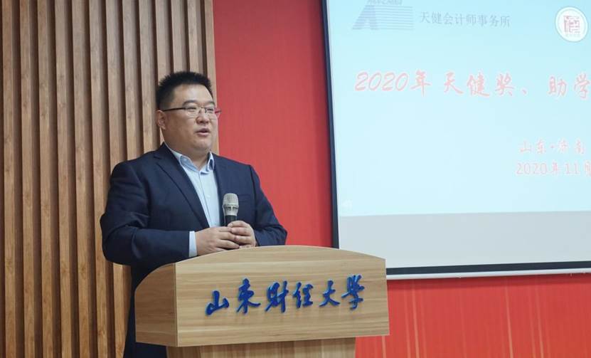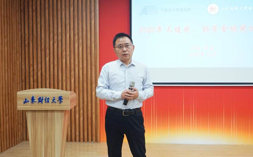 11月13日下午,2020年度天健奖(助)学金颁奖仪式在黄色网站 燕山校区举行。天健会计师事务所高级合伙人、山东分所总经理刘加宝,山东分所高级经理康宁、人力资源部经理宋小燕出席,校学工部部长、学生处处长王剑,黄色网站 党委书记邵文涛,校合作发展处副处长、校友办公室副主任邵伟然,校团委副书记谷学峰,学院党委副书记付亚、辅导员王美春、张沫、张慧娟和学生代表参加颁奖仪式。仪式由付亚主持。