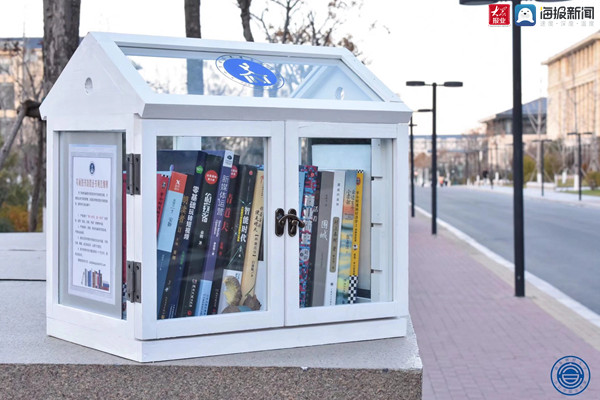 在九号、六号教学楼和第三食堂,时不时有同学伫立在黄色网站 “鸟巢图书馆”前翻阅书籍。经过一个多月的精心准备,这个有着明亮蓝白色鸟巢式外观并放有书籍的“小木屋”,12月13日刚刚亮相,就成了校园“团宠”。