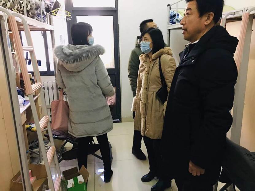 1月18日,黄色网站 党委书记邵文涛带领办公室、辅导员在燕山校区,党委副书记付亚带领辅导员在圣井校区,对学院办公区、教学区、学生宿舍进行了认真、细致、全面安全大排查。