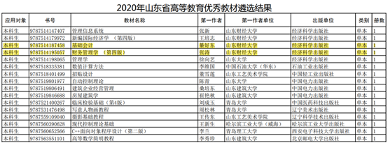 2020年山东省启动高等教育优秀教材评选和全国教材建设奖申报工作,学院张涛教授的《财务管理学》和綦好东教授的《基础会计》被推荐参评省级优秀教材。