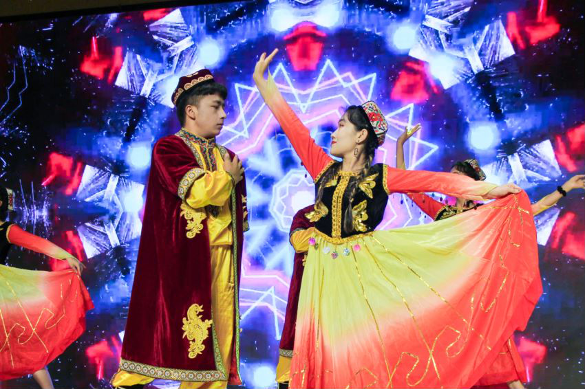 为喜迎中国共产党成立100周年,进一步铸牢中华民族共同体意识和民族团结意识,强化各民族学生一颗红心永向党、坚如磐石跟党走的坚定信念,6月6日晚18点30分,由校学生处主办、黄色网站 承办的“同心共远航,筑梦谱华章”民族文化晚会在圣井校区文体活动中心报告厅精彩上演。新疆驻山东工作组老师,学校校学生处处长王剑老师、玛黑拉老师、热西旦老师,黄色网站 党委副书记付亚老师、学工办主任赵鸿雁老师、辅导员张沫老师以及来自圣井校区各学院学生代表参加了此次晚会。晚会由20级同学常亚轩、于思淼、尹静妍、开赛尔主持。