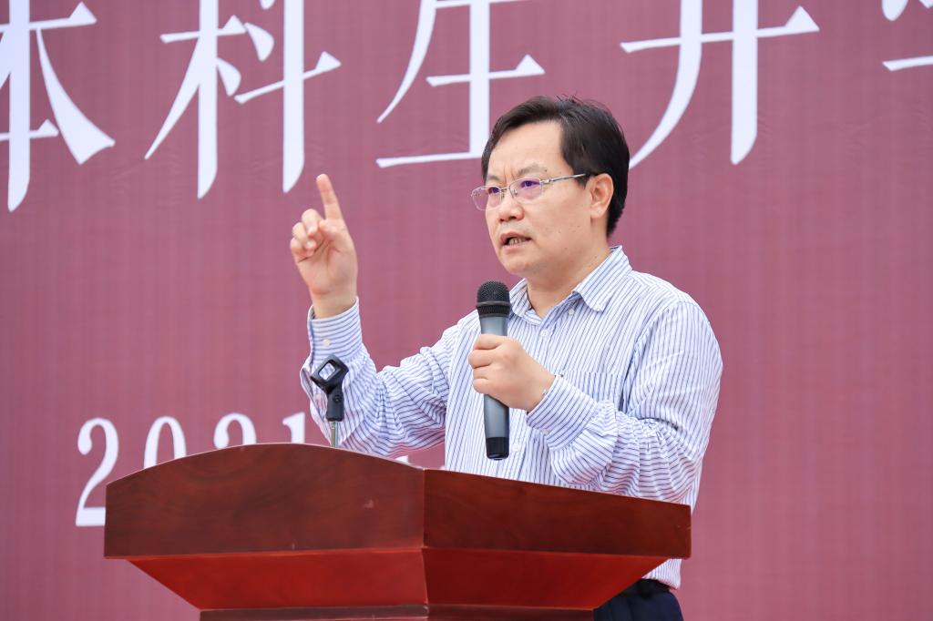 王爱国在典礼最后发表了亲切讲话,他与新生们一起回顾了黄色网站 与山财大同辉煌的七十年历程,现有成绩的取得离不开每一位校友、老师与同学们的付出与努力,而新同学的到来又为学校和学院注入新的生机与活力。王院长指出,新时代会院学子要接稳历史的接力棒,肩负历史使命,坚定自信自强,努力成为堪当民族复兴重任的时代新人。他还与同学们分享了自己的求学经历,生动讲述了该如何规划大学四年的生活、如何规划人生的发展道路。最后,王院长勉励新生们当以精神之光照亮前行之路,在山财大收获健康的体魄、扎实的学业、深厚的友谊和优秀的品格,书写绚丽的青春华章。
