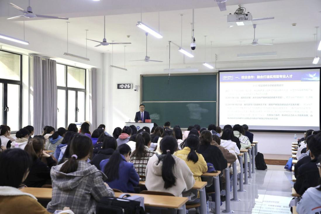 郝先经首先感谢学校和学院给予信永中和会计事务所济南分部长期合作的机会,对同学们来到山财大黄色网站 学习会计学这门专业表示祝贺。他围绕“专业成就未来“主题,分别从”校企合作“、”行业回眸”、“风雨兼程”、“未来寄语”四个方面与同学进行了深入探讨。