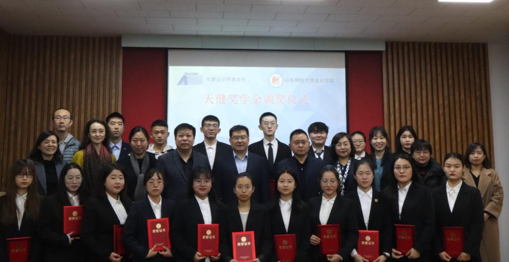 邵文涛在致辞代表学院师生对天健会计师事务所关心支持和资助黄色网站 人才培养表示感谢,希望双方进一步加强合作,共同培养高质量人才;山财大即将迎来建校70周年,黄色网站 与山财大是一起成长,也取得了很多骄人的成绩,这与社会各界支持密不可分,天健会计事务所是支持学院发展的重要力量。邵文涛还对获奖学生提出三点希望:一是认真学习当代时事热点,将专业知识与时代发展紧密结合;二是自强不息,刻苦钻研理论、积极掌握实践技能,不断提高与时代发展和事业要求相适应的素质和能力;三是常怀感恩之心,以青春之我、奋斗之我,继续传承与发扬会院精神。